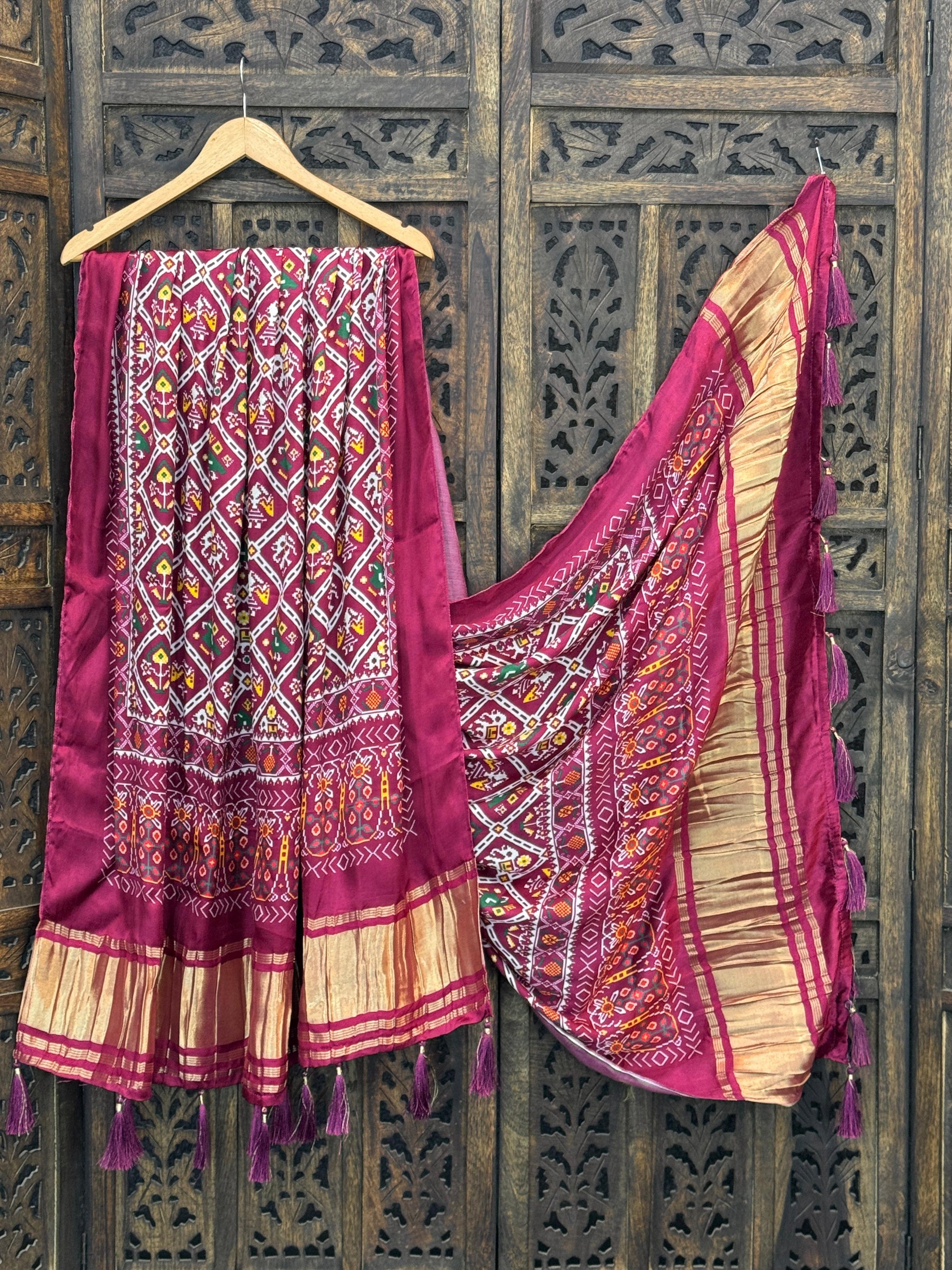 Designer Pure Gaji Dupatta – Kalamkari, Patola, Gujarati Prints